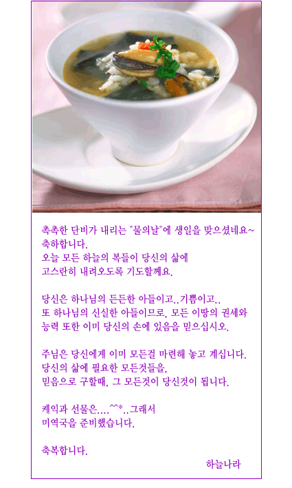 두 사람이 서로 챙겨주네~ 키키키... '유령'님 귀 빠진 날~ 축하합니다. 그런데 몇 번째 생일이오? ㅋㅋㅋ...