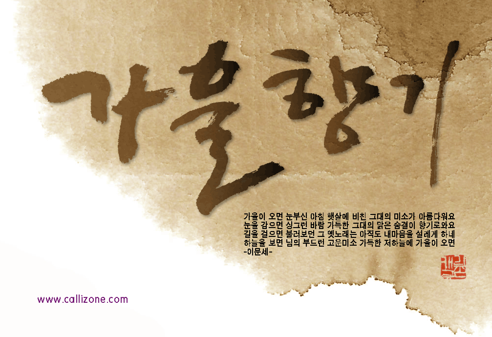 [직접쓴 캘리} 가을향기 callizone 일반 1 9488 2007.10.02 14:07 http://www.callizone.com/home/index.php + 572 가을이 익어가고 있습니다. 가을을 음미하면서 한번 만들어 보았습니다. 회원님들 감기조심 하세요^^